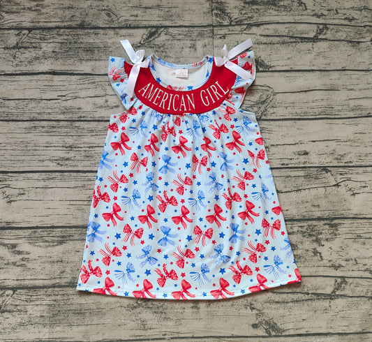 pre -order American Girl red blue bow Summer girl dress GSD1827