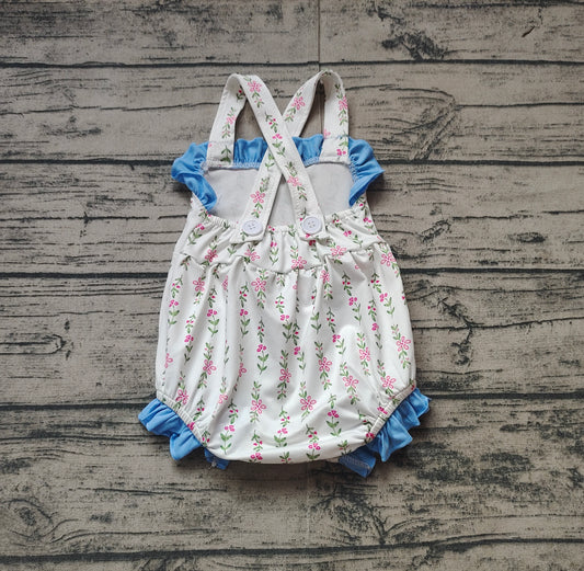 Pre-order Blue flowers lace short sleeve baby romper SR1478