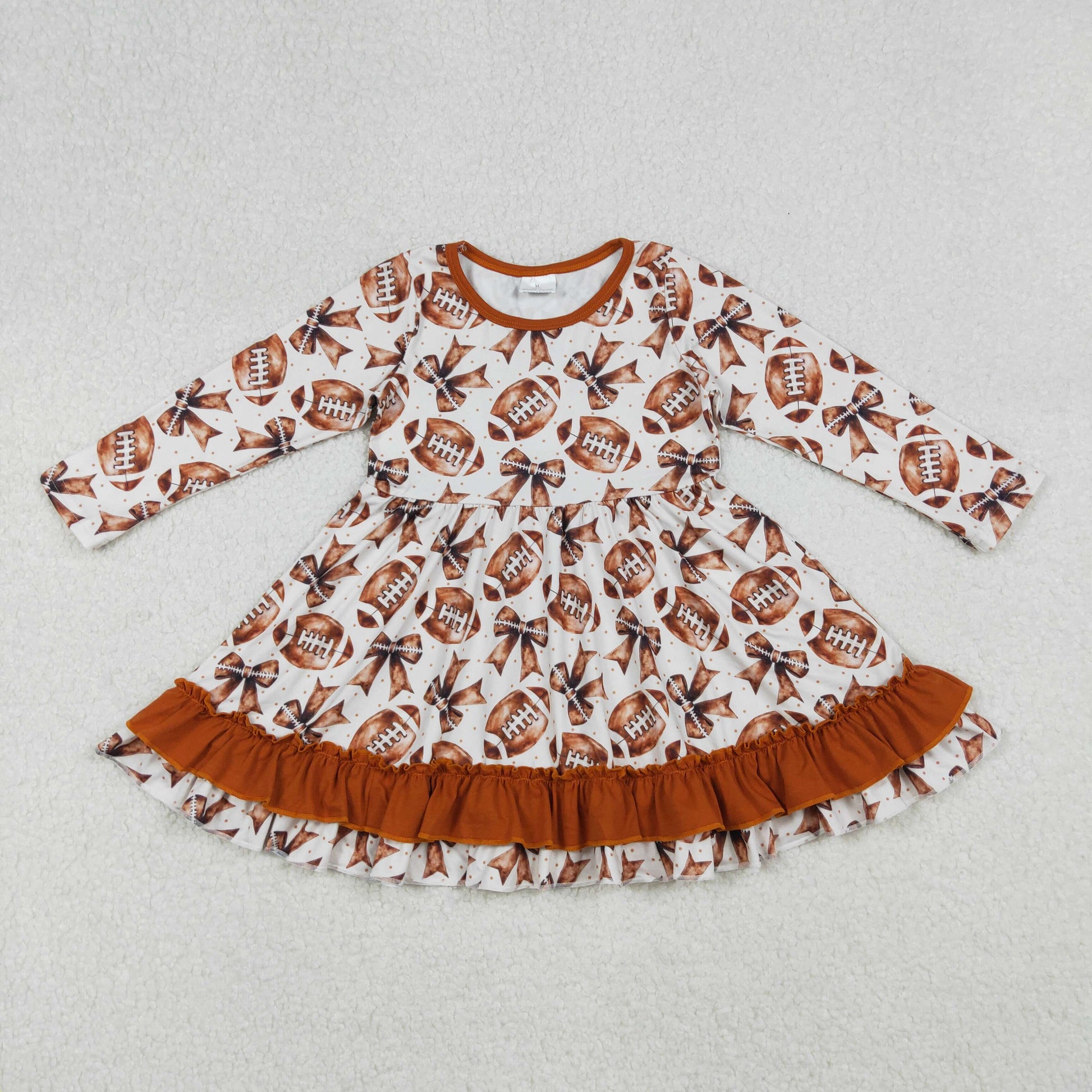 baseball bow long sleeve Girls dress GLD1268