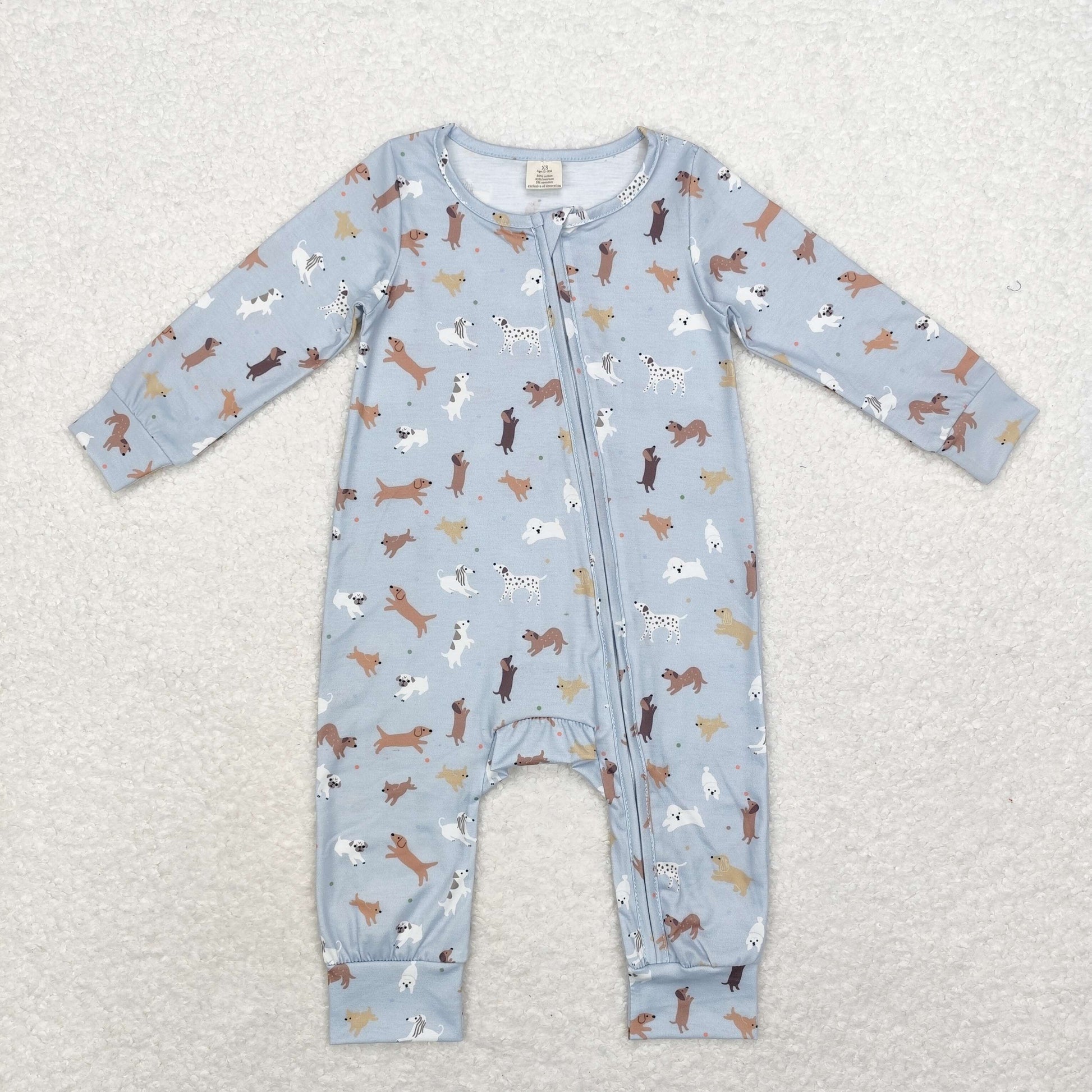 blue Dog print Baby Romper With zipper( material contains bamboo )