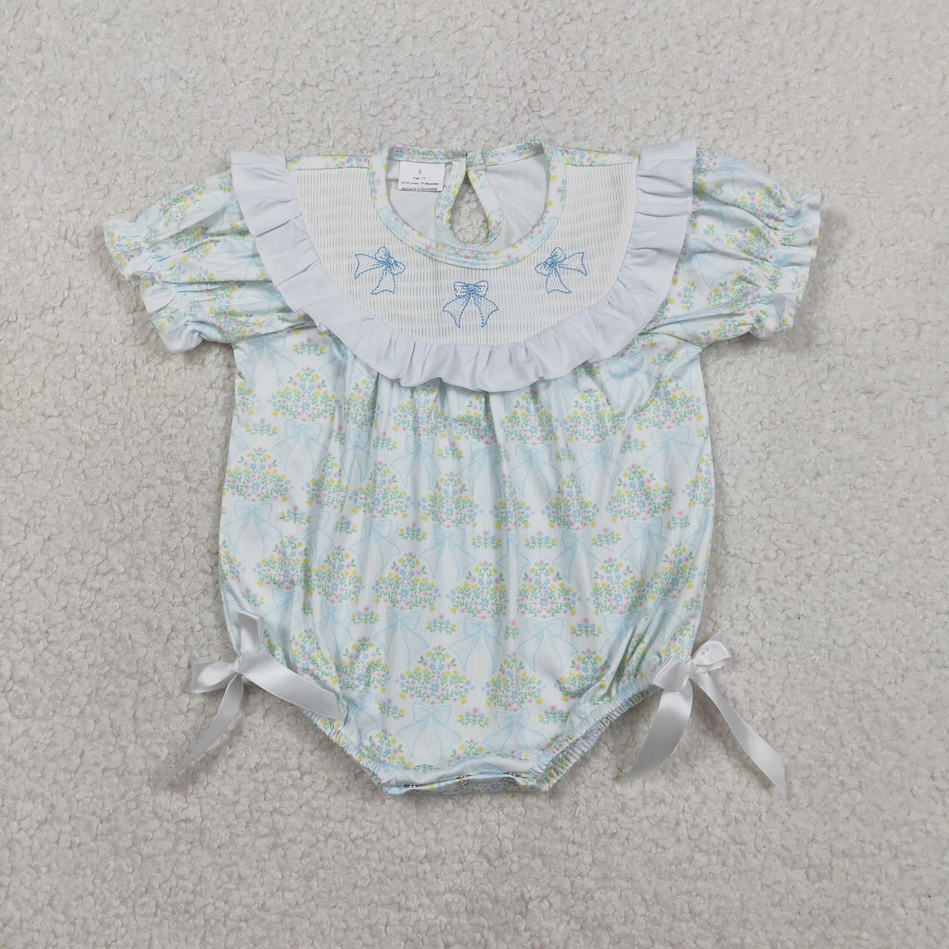 Floral embroidery Smock Girls baby romper SR3487