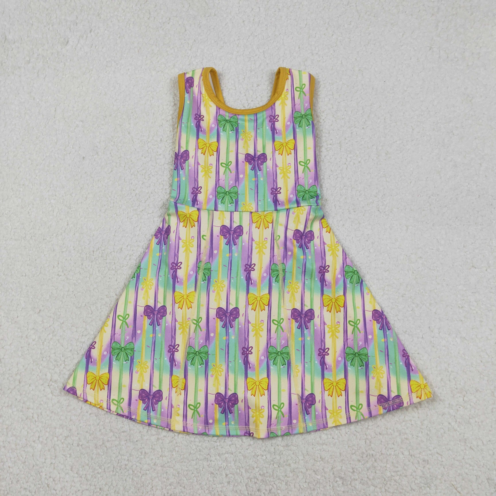 Mardi Gras Colored stripes Bow Athletic Girls Dress GSD2948
