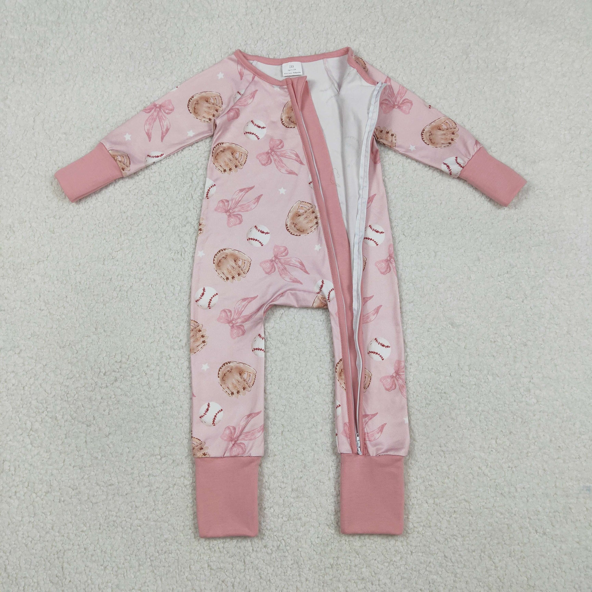 Pink baseball bow baby Romper LR2967