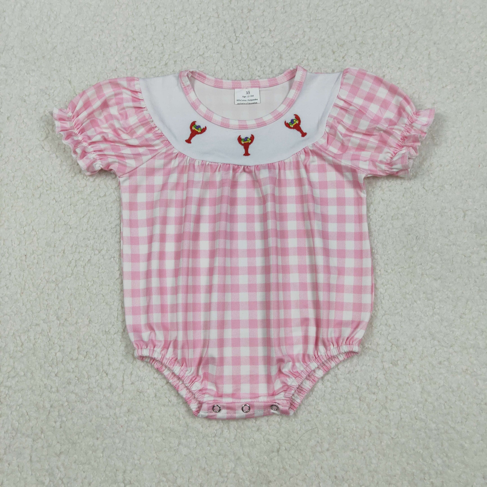 Pink Embroidered Lobster sleeveless baby Romper SR3256