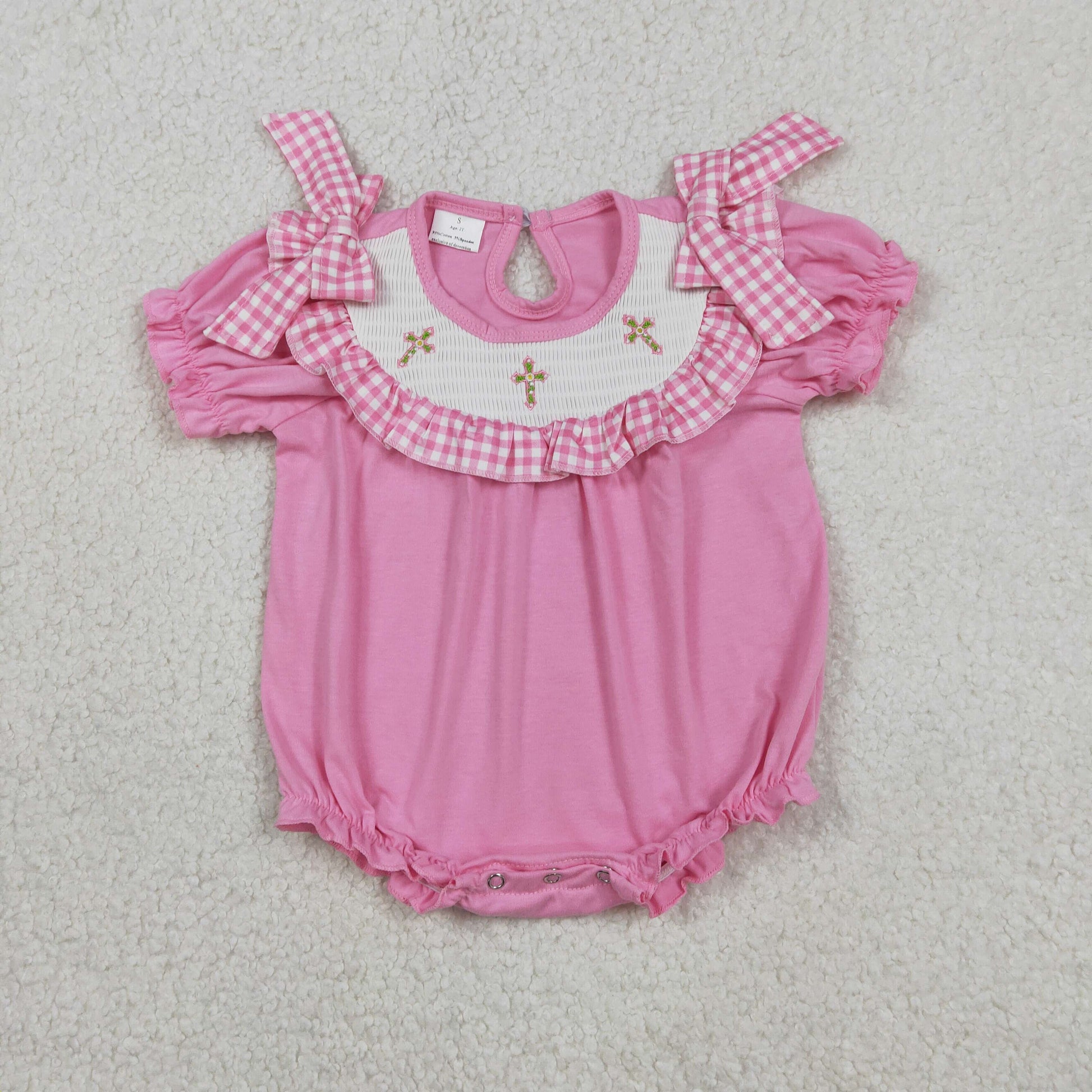 Pink Smock Cross baby romper SR3250