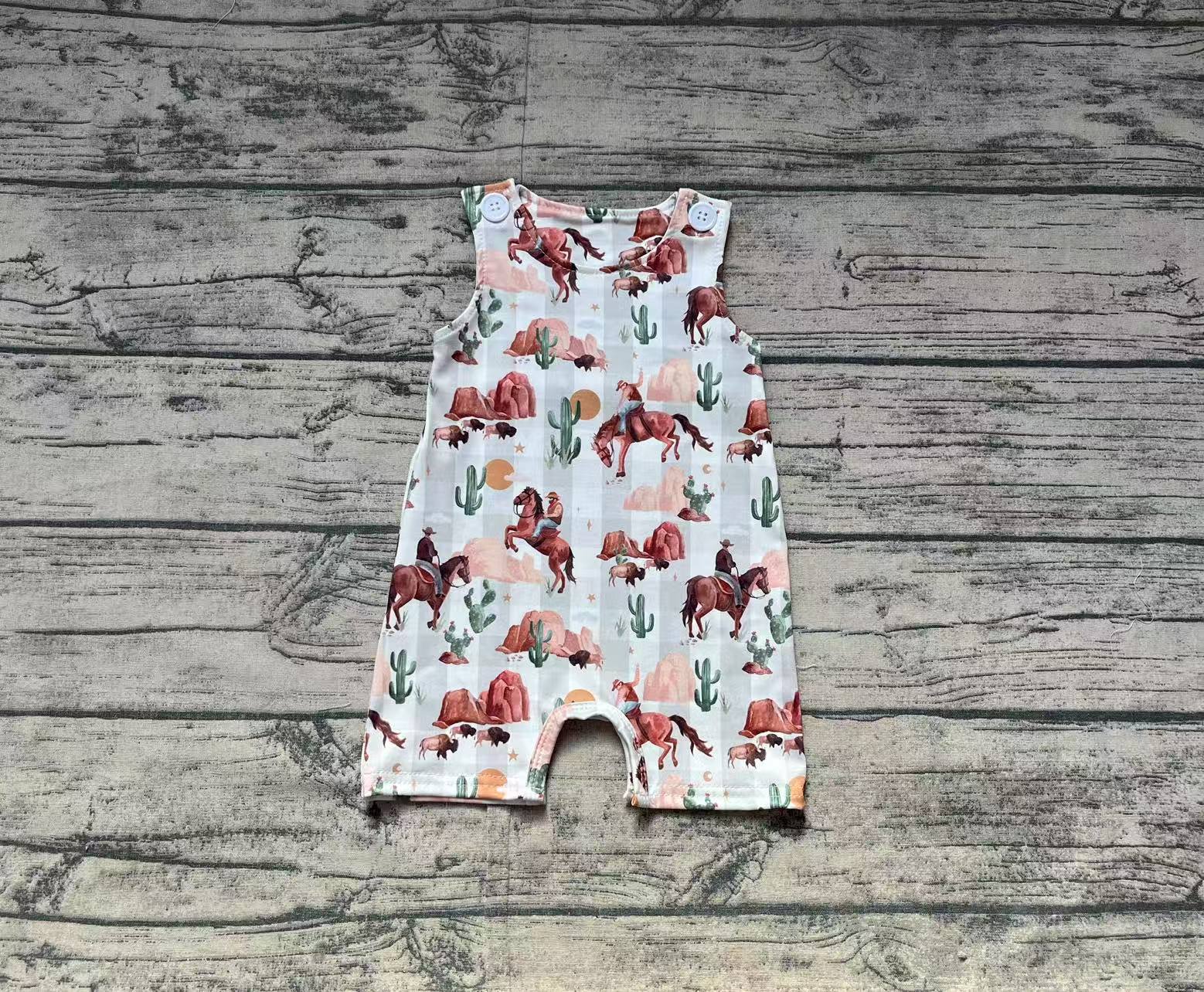 Pre-order cactus plaid short sleeve baby romperSR2538