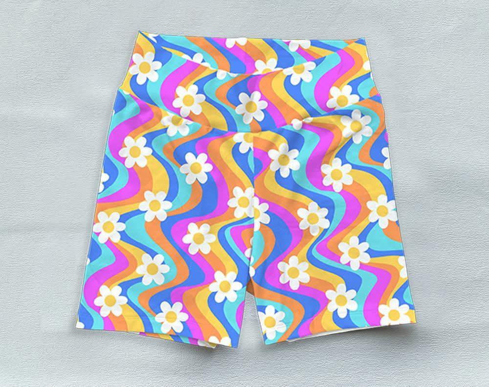 pre -order colorful stripe flowers print girl swim Shorts SS0536