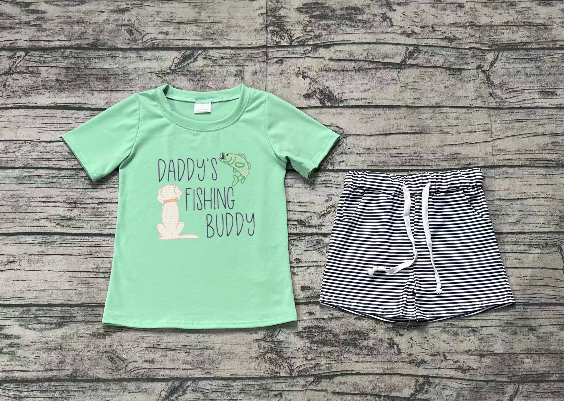 pre -order green Embroidery daddy's fishing buddy boys Summer set BSSO1147