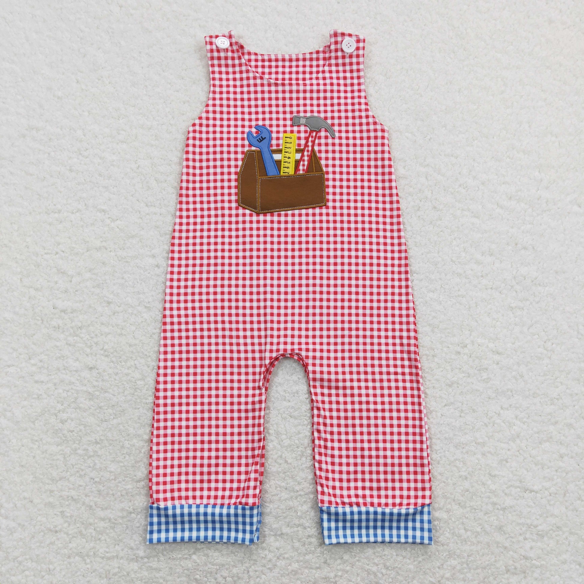 Red Plaid Tool Baby Romper