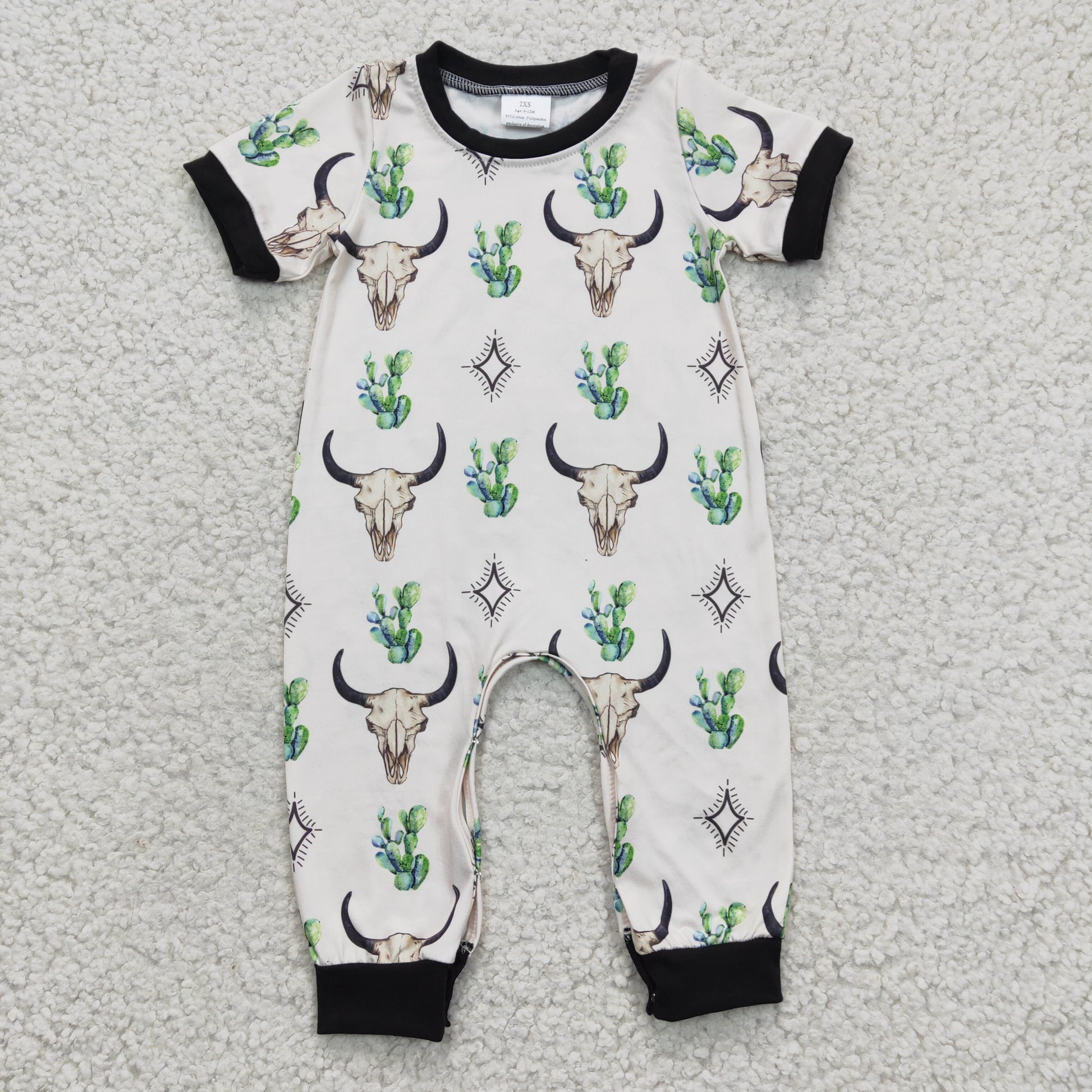 SR0141 Western Cow Cactus Boy Romper (usa warehouse)