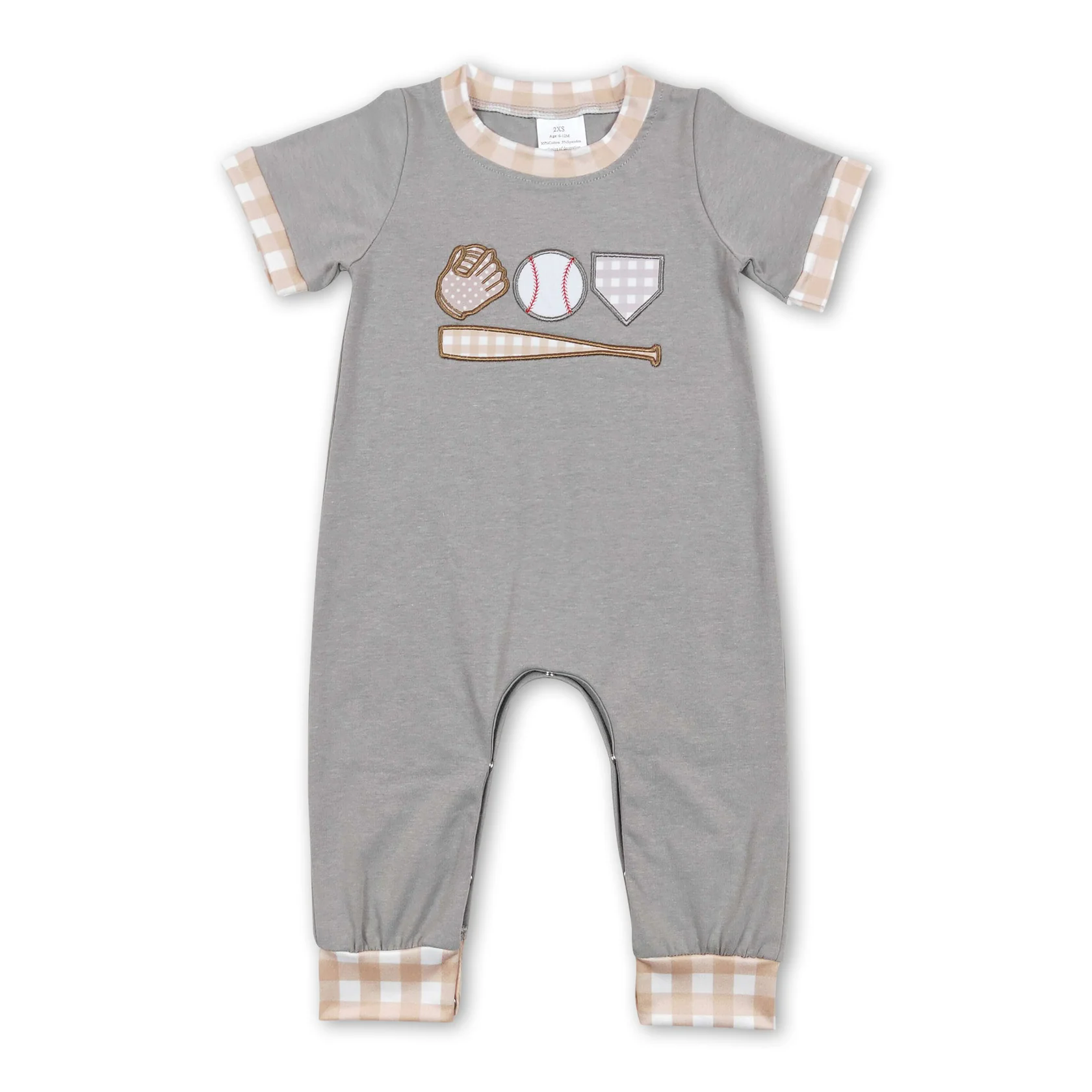 Grey baseball embroidery boy baby Romper (us warehouse)