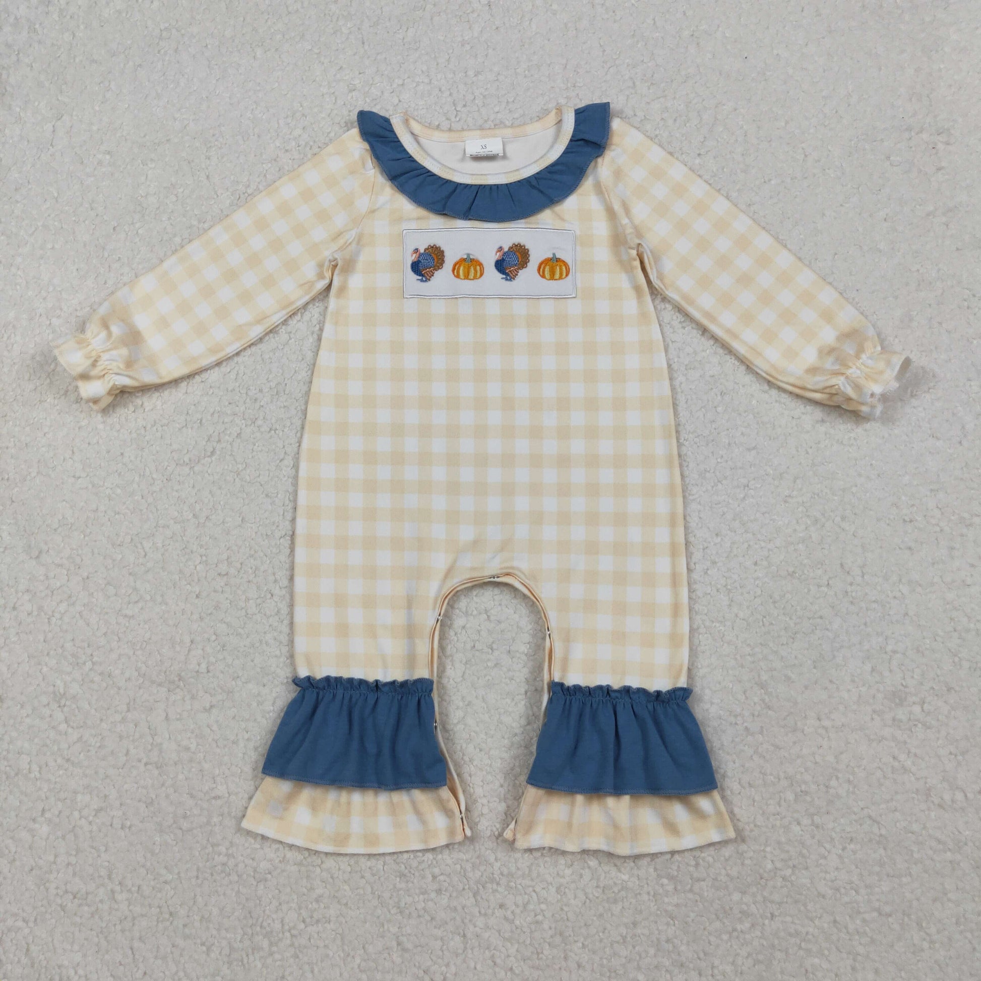 Thanksgiving Turkey Embroidered Pumpkin Baby Romper LR2678
