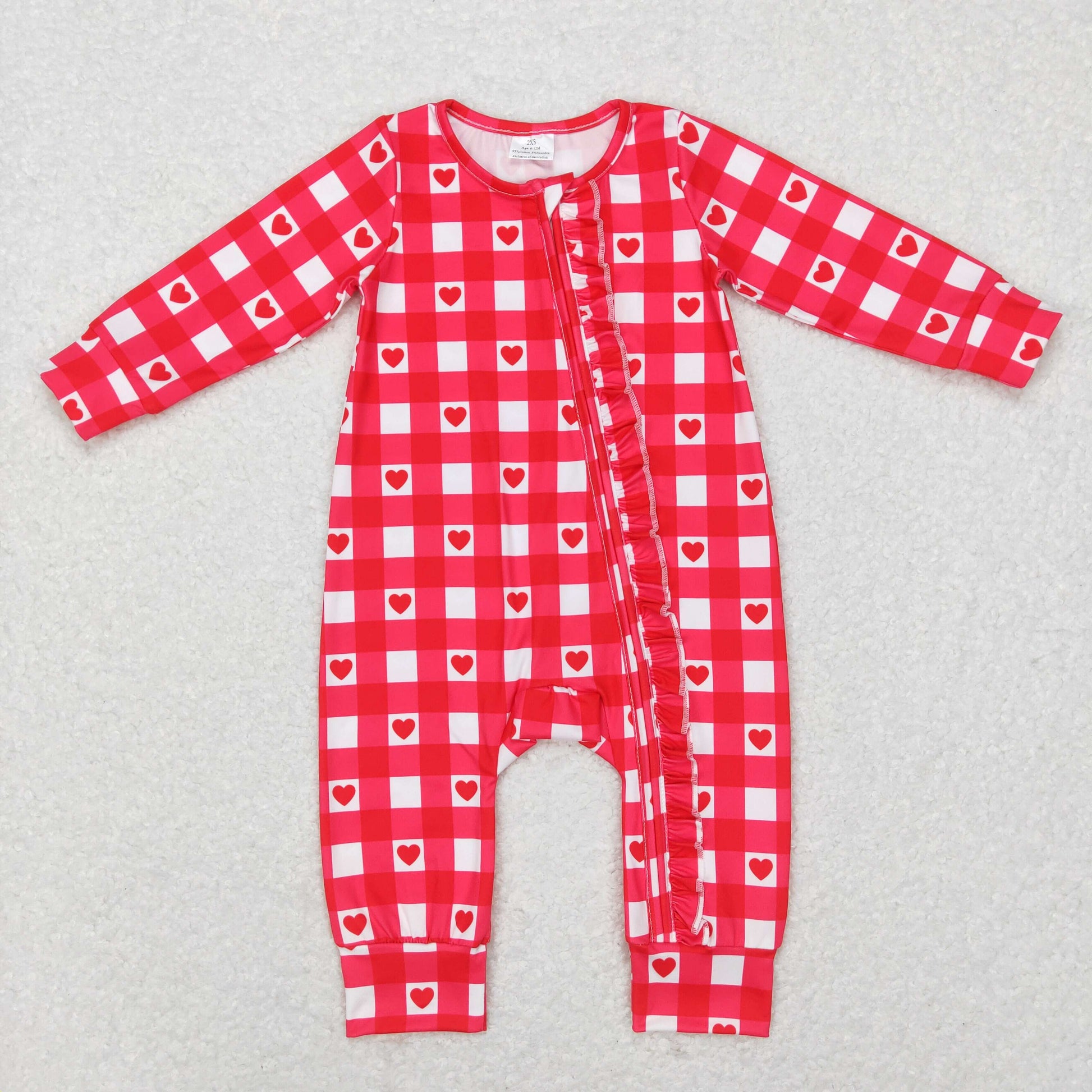 Valentine ’s Day Red Plaid Long Sleeve With Zipper Romper